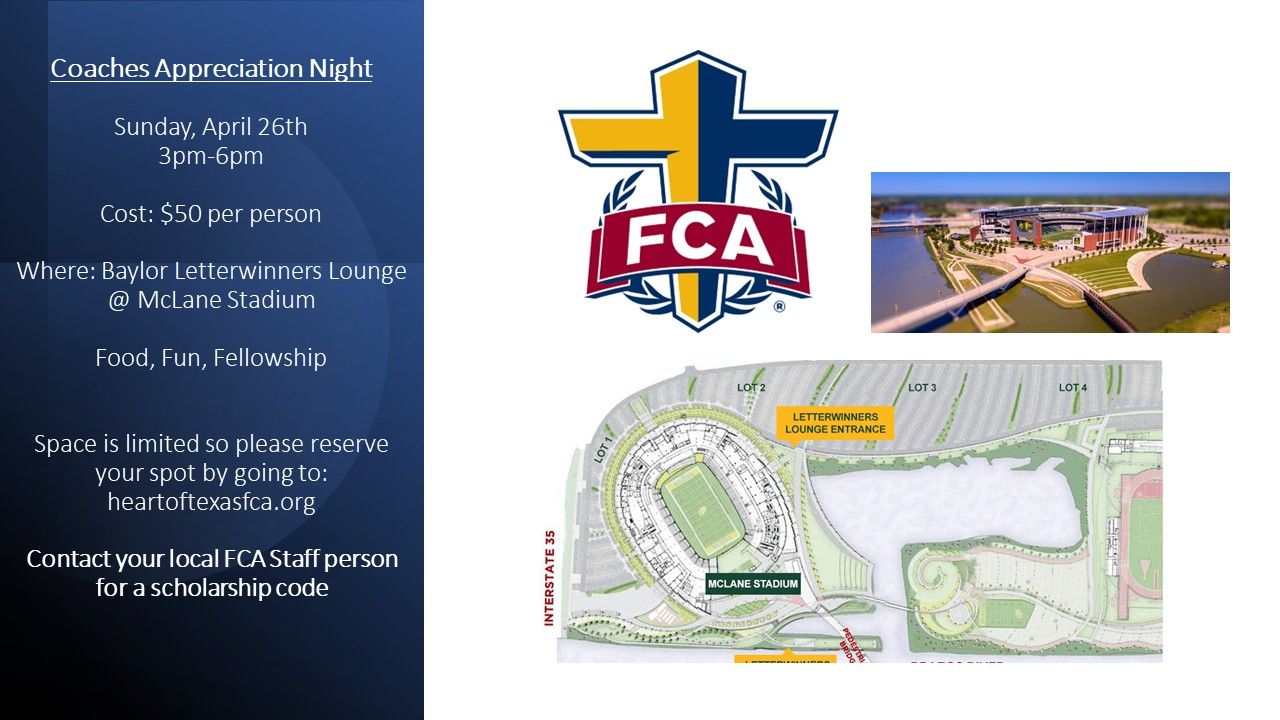 We are excited you can join us for our Coaches Appreciation Night! We plan and hope for a refreshing time of fellowship and encouragment for you.